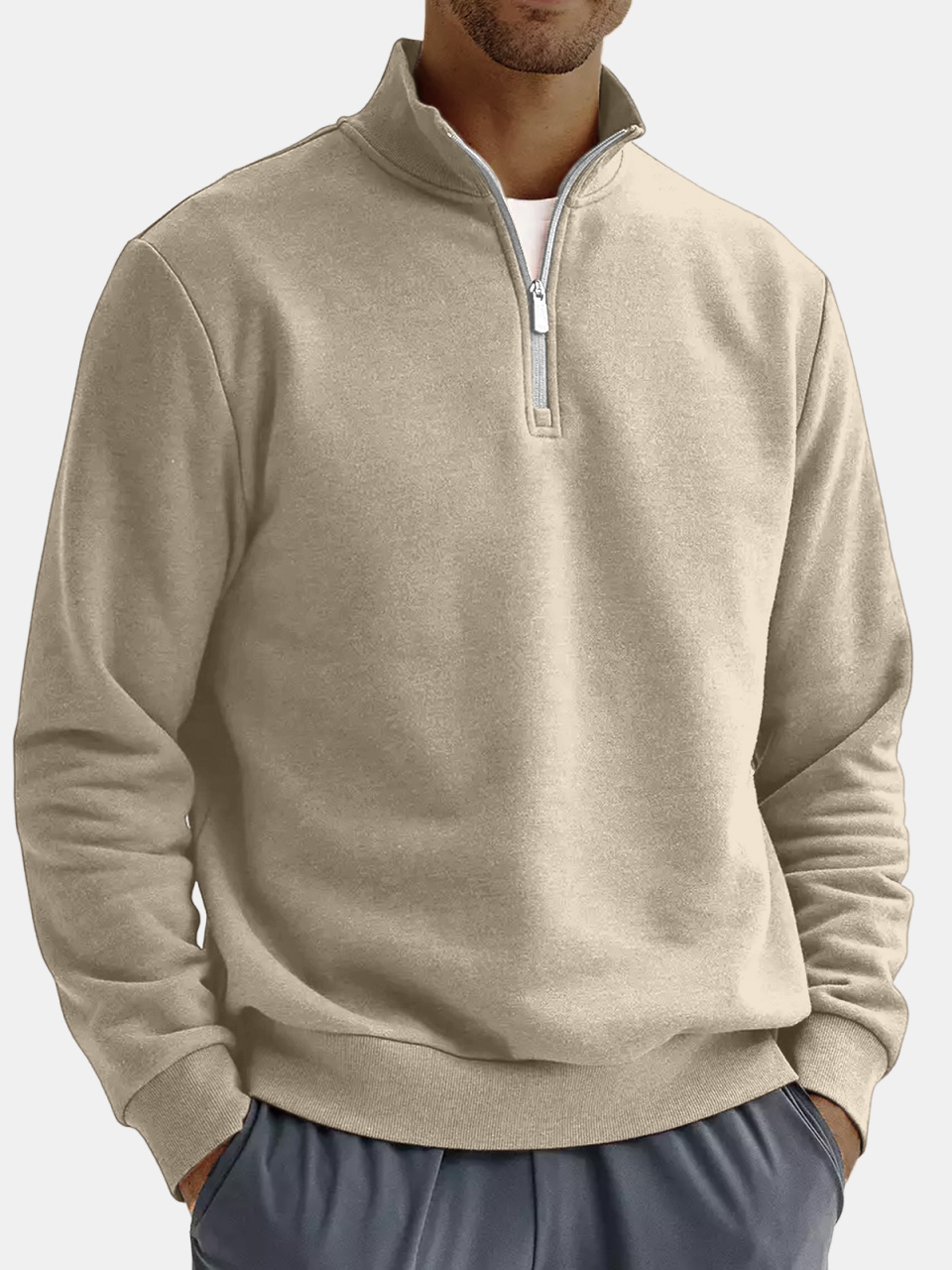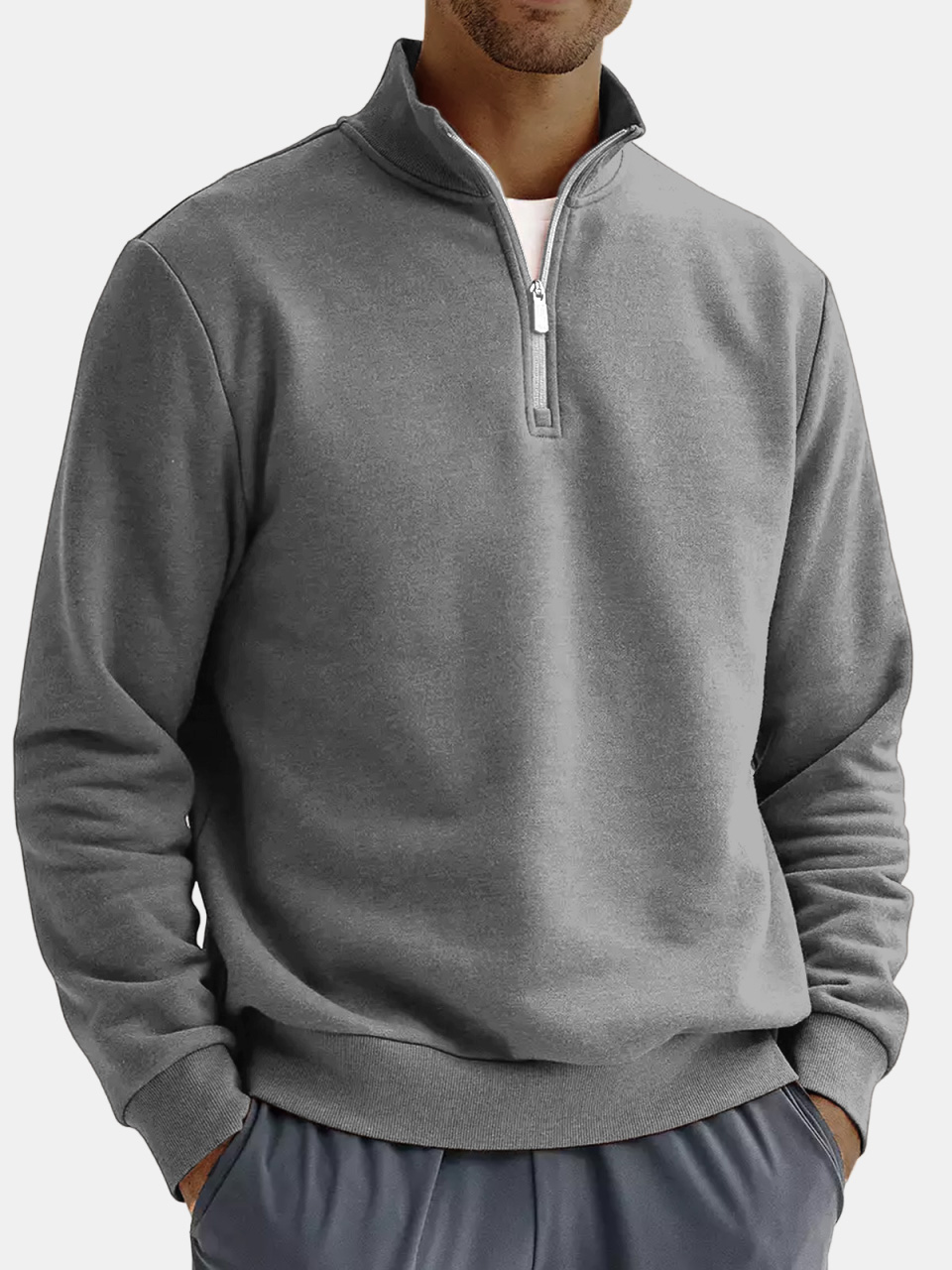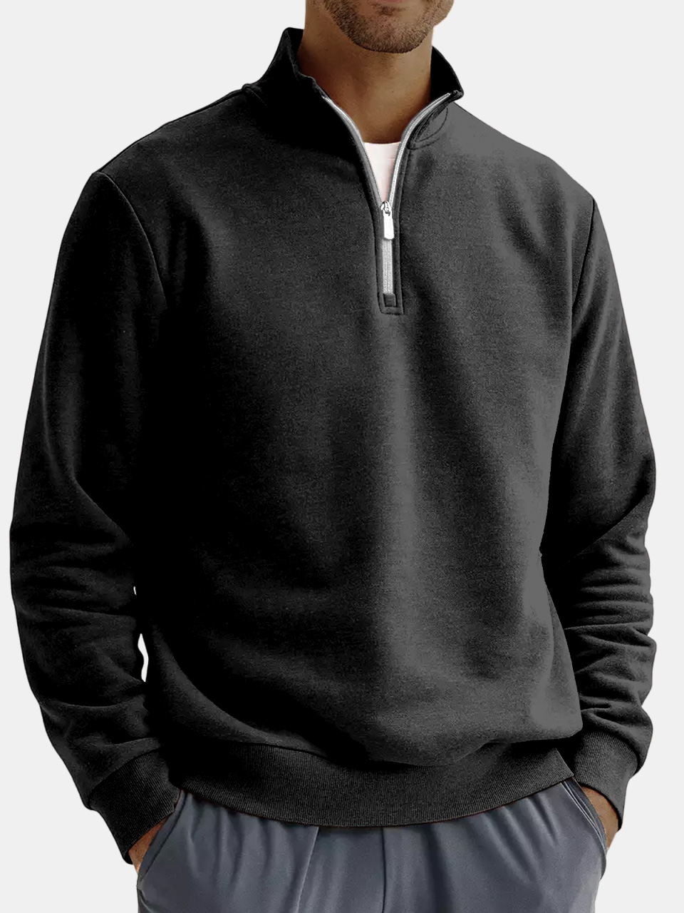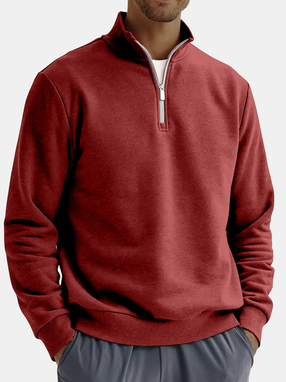 Men's Autumn And Winter Casual Solid Color Stand Collar Sweatshirt