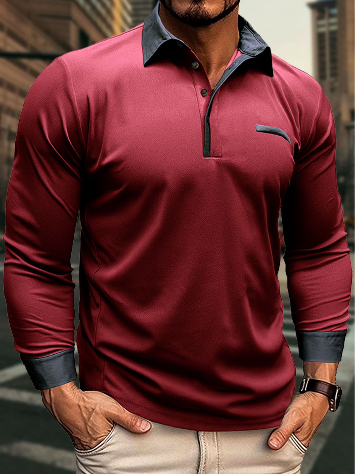 Men's Contrasting Lapel Long Sleeve Polo Shirt