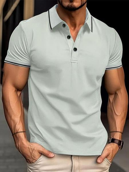 Men's Fashion Line Printed Button Short Sleeve Polo Shirt