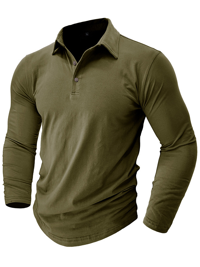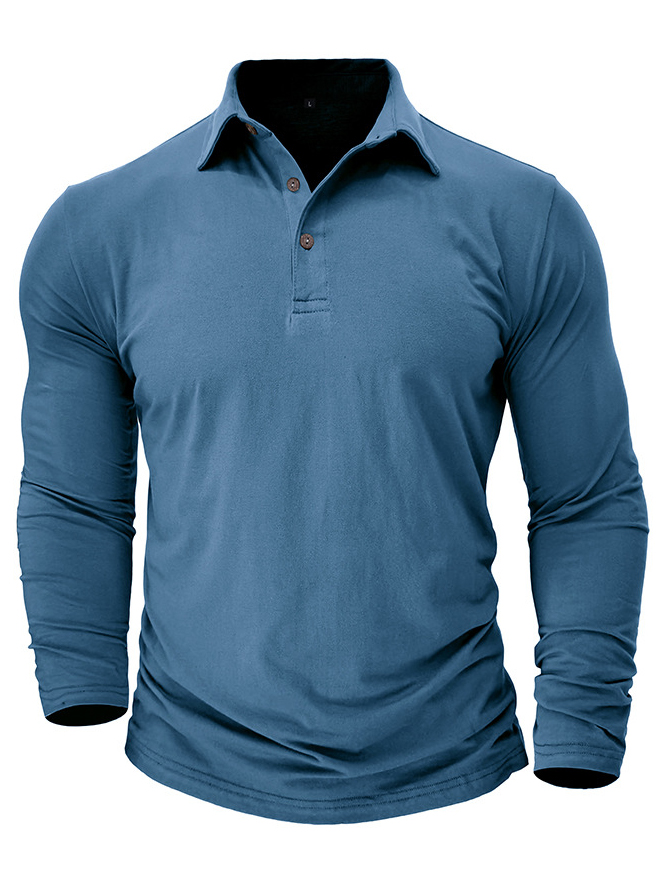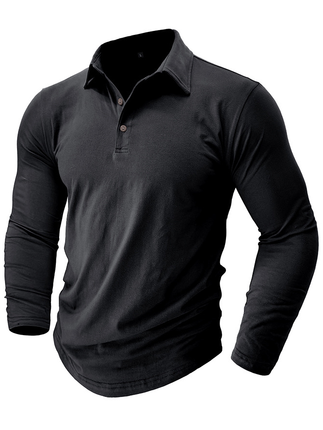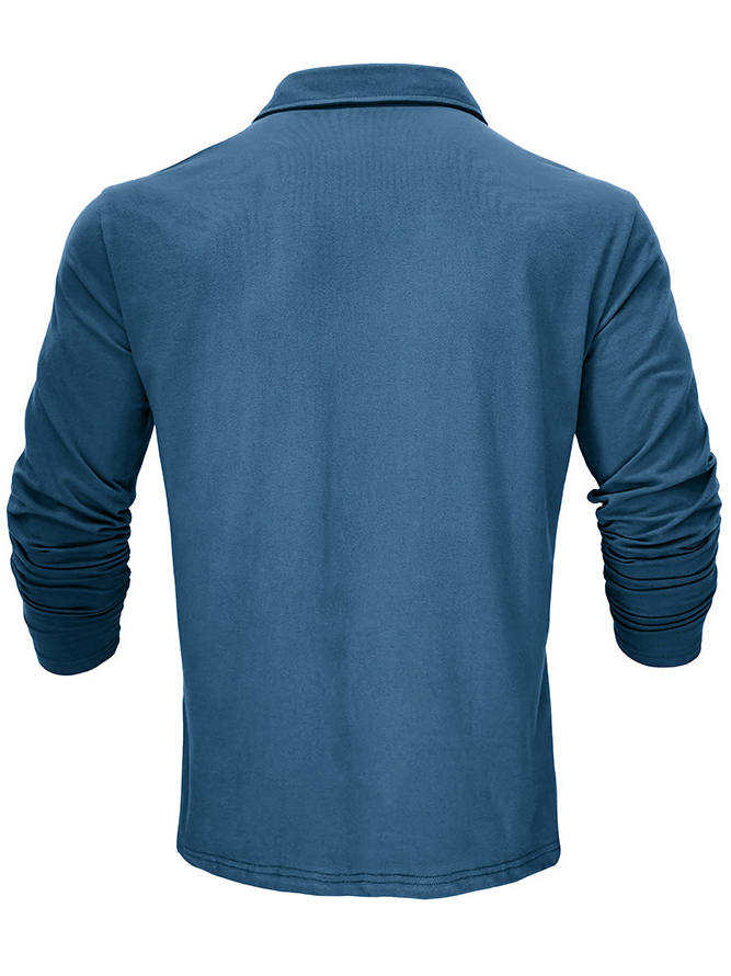 Men's Pure Cotton Solid Color Basic Simple Henley Polo Long Sleeve Top