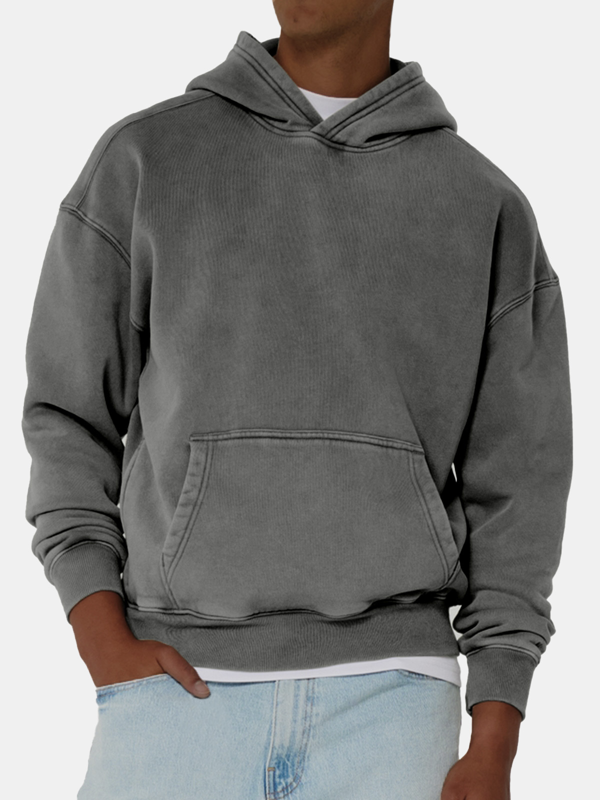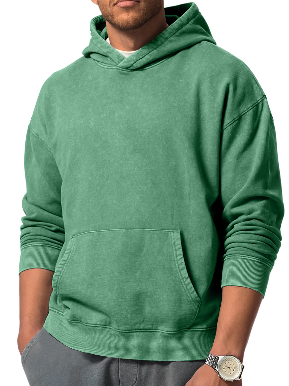 Men's Vintage Washed Distressed Pocket Hooded Sweatshirt