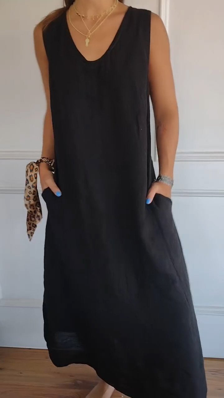 Women's Cotton linen casual dress with pocket