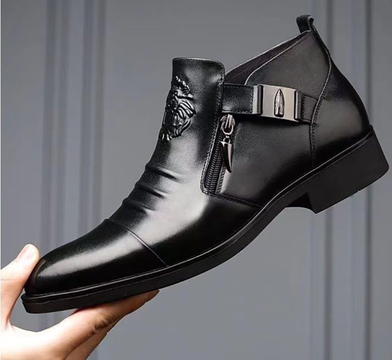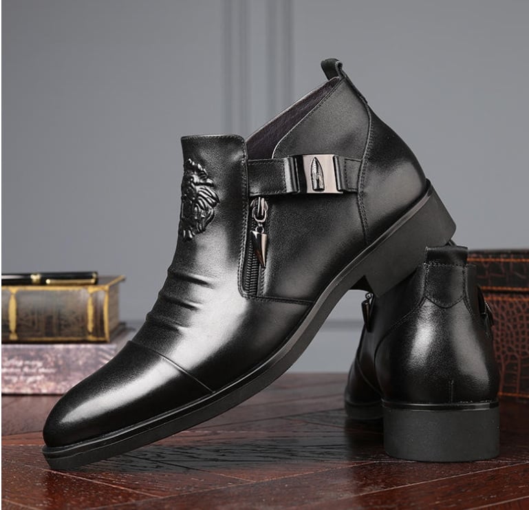 Man's Hand-embossed Zipper Leather Short Boots