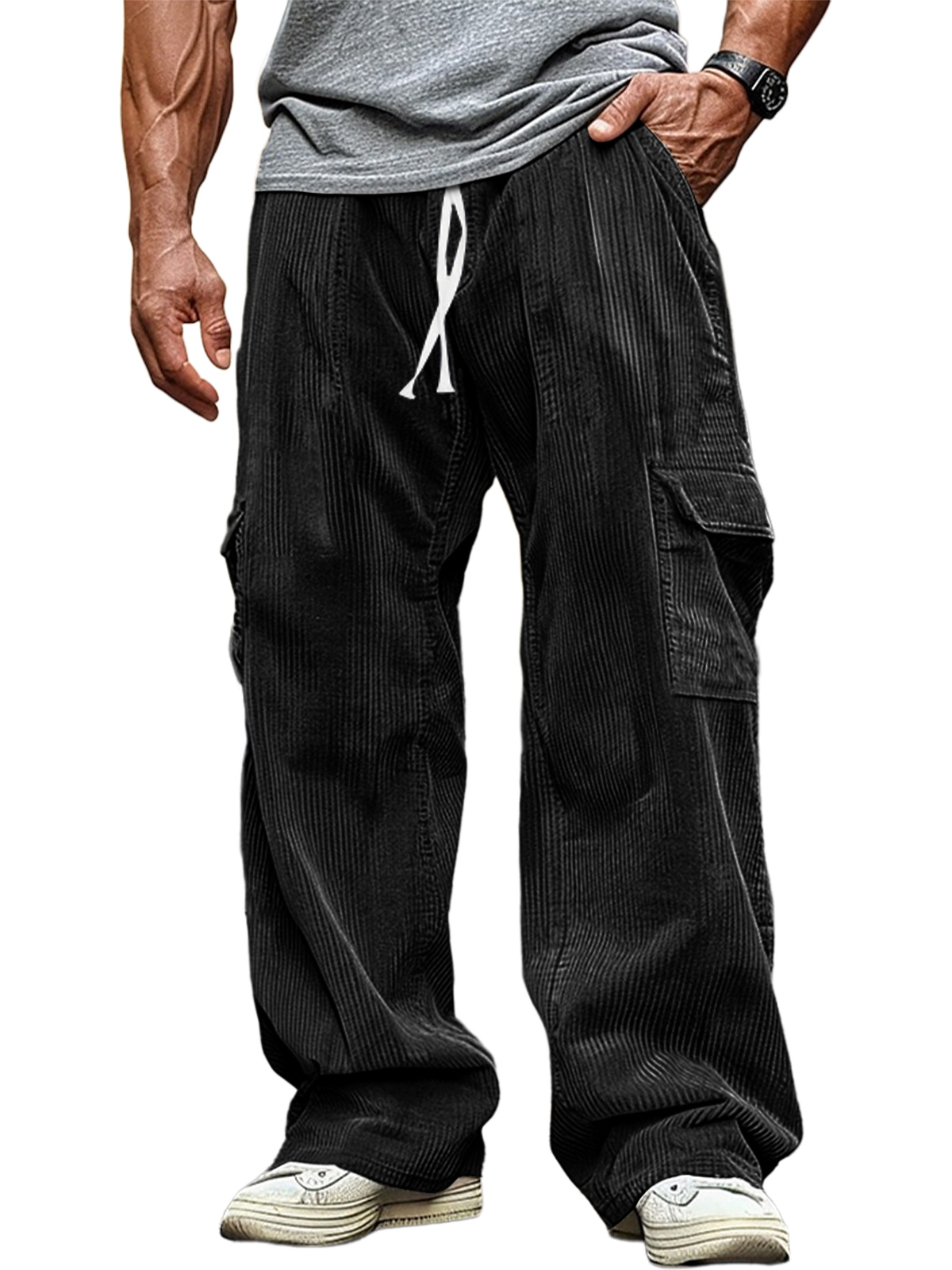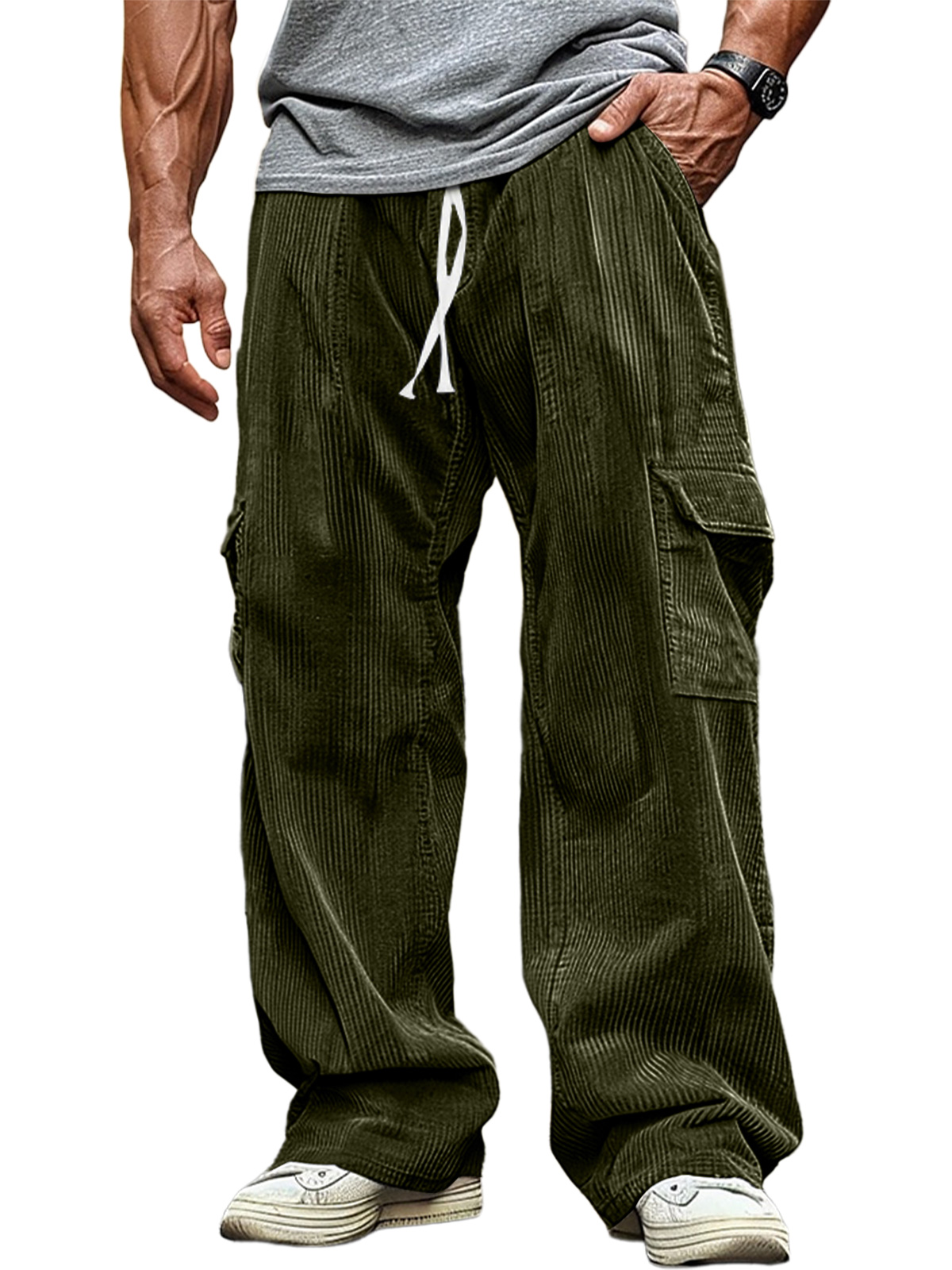 Men's Casual Corduroy Elastic Band Solid Color Trousers