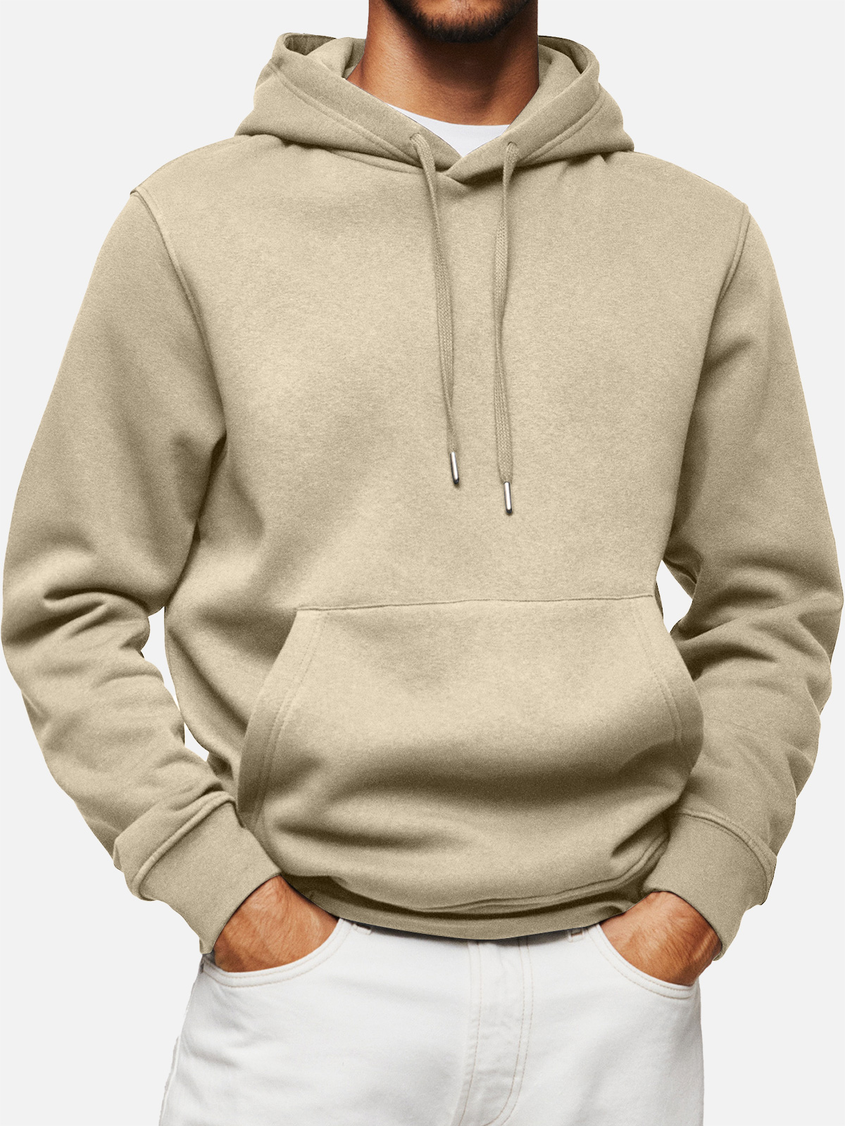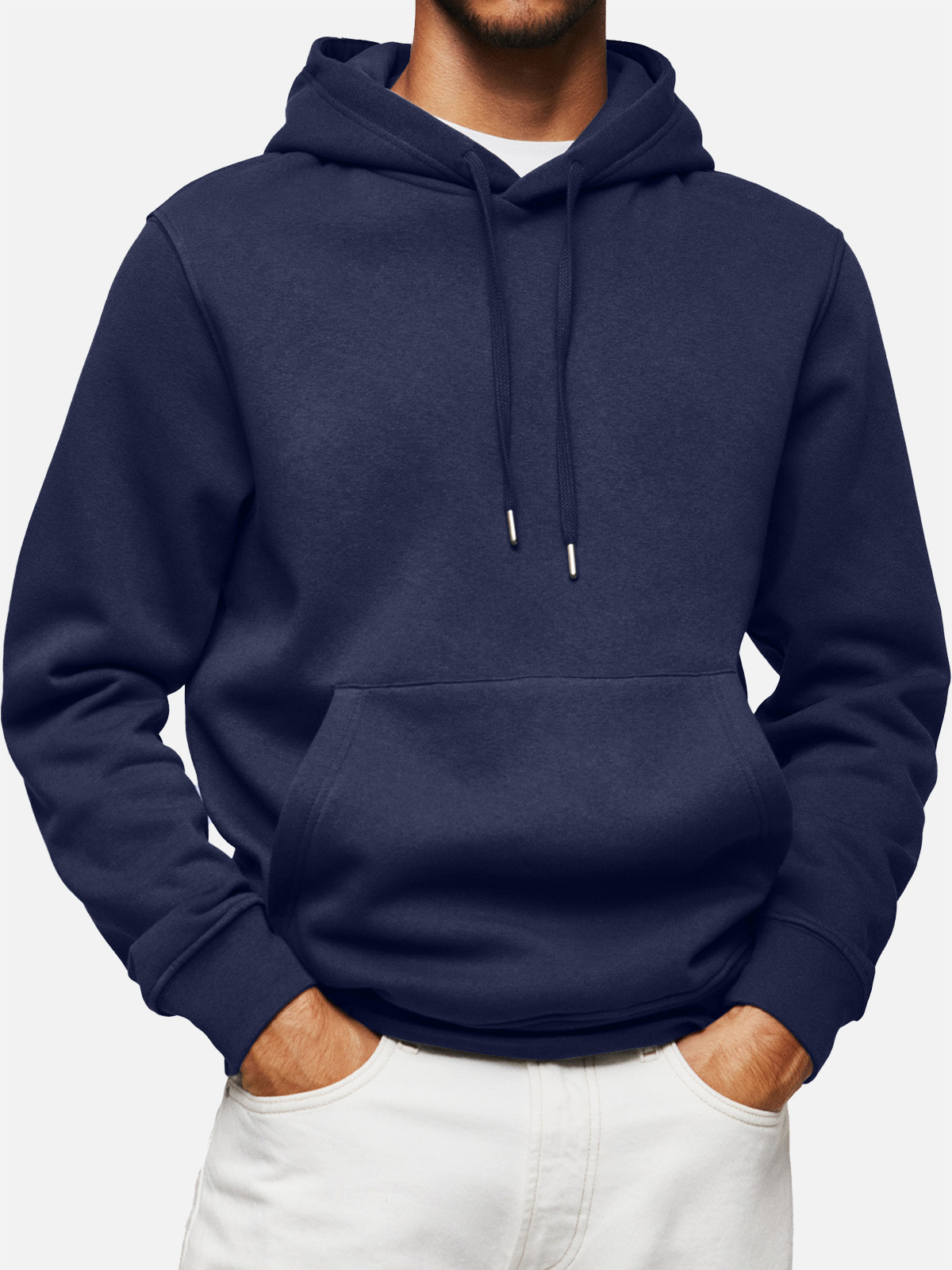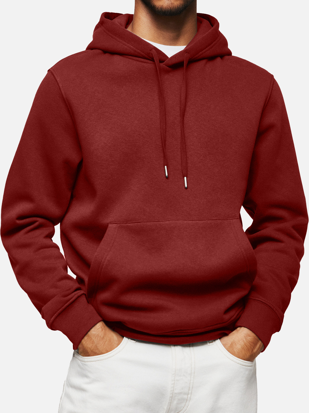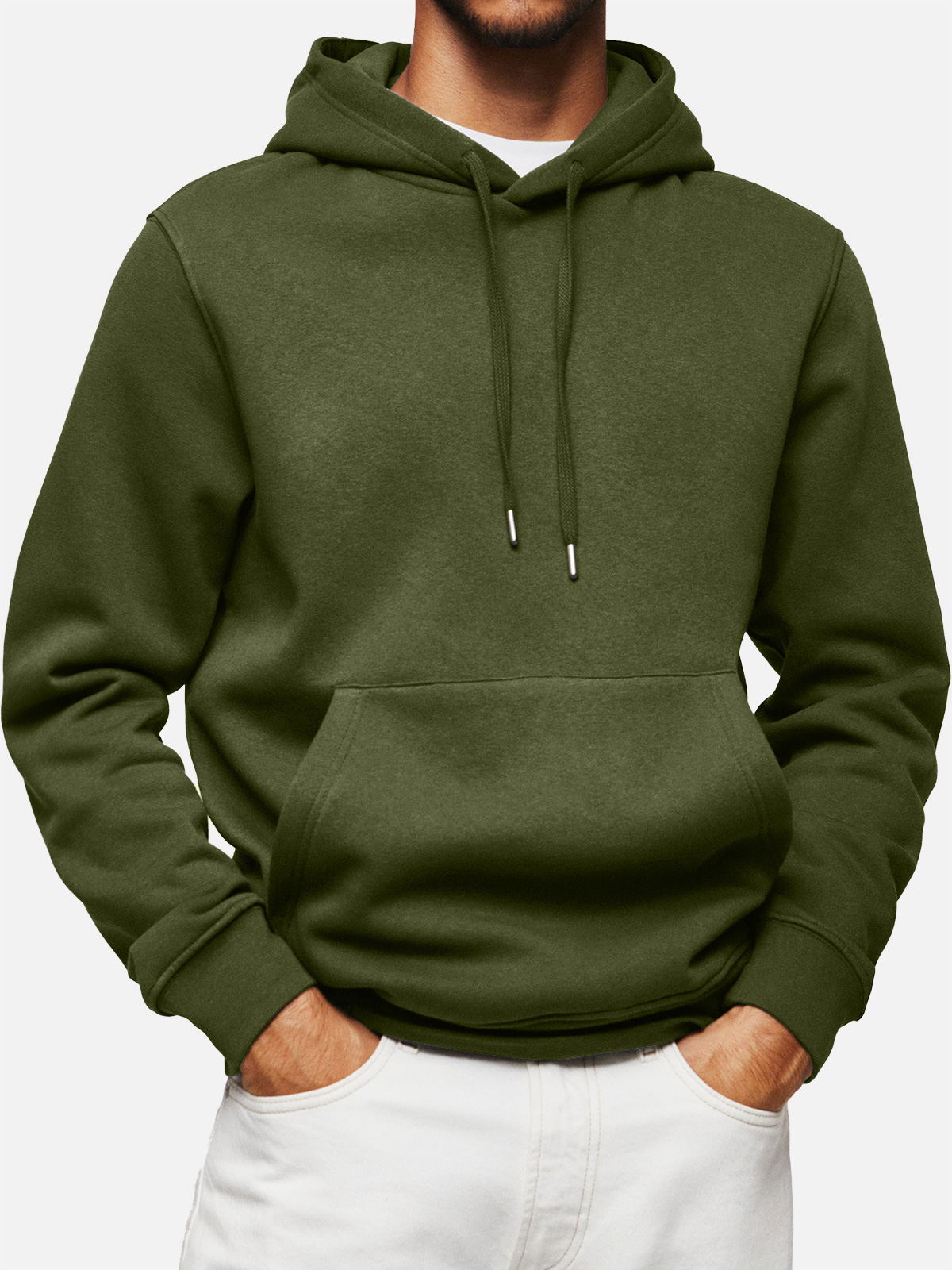 Men's Casual Hooded Solid Color Pocket Sweatshirt