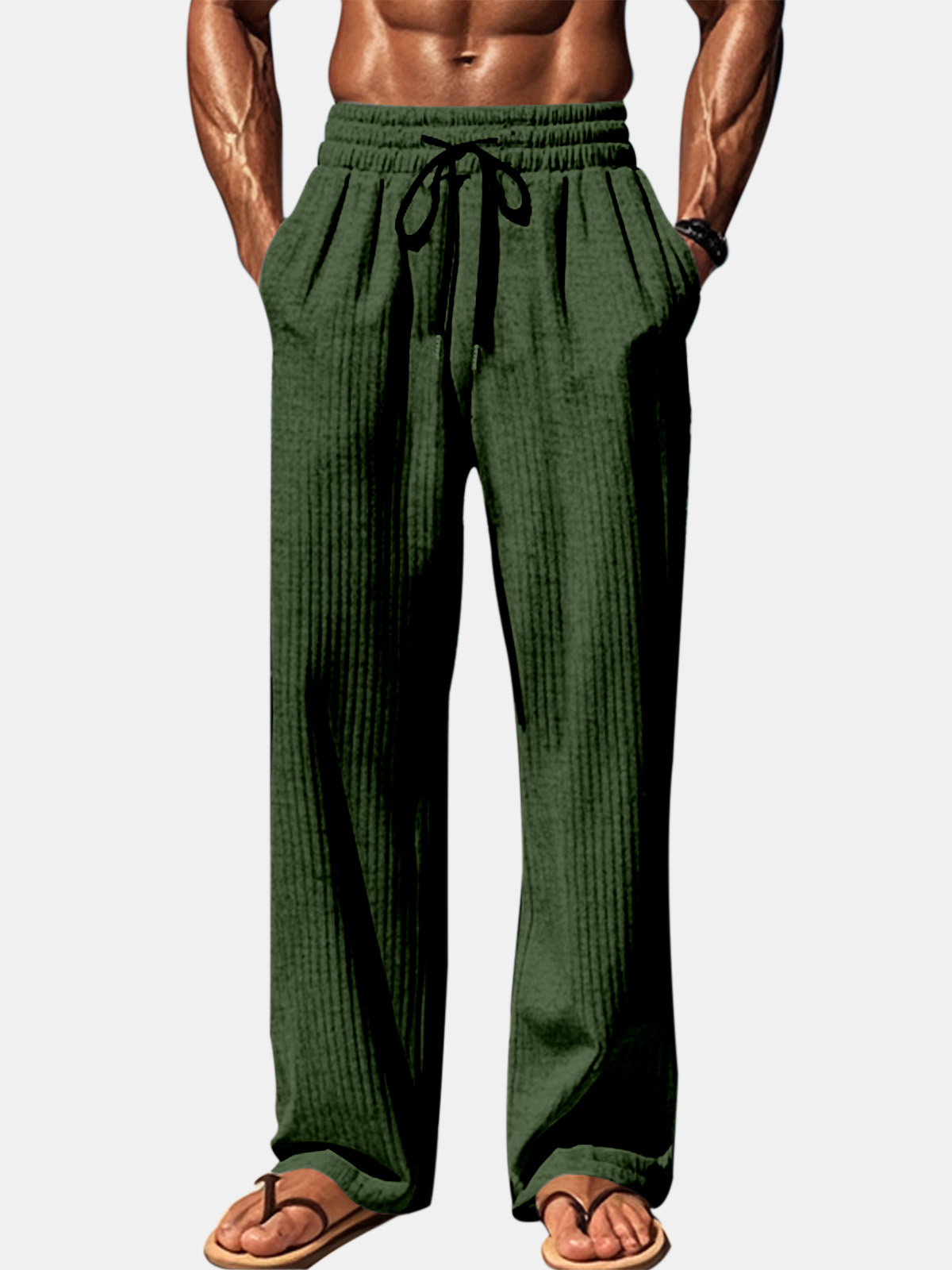 Men's Daily Solid Color Vertical Strip Casual Trousers