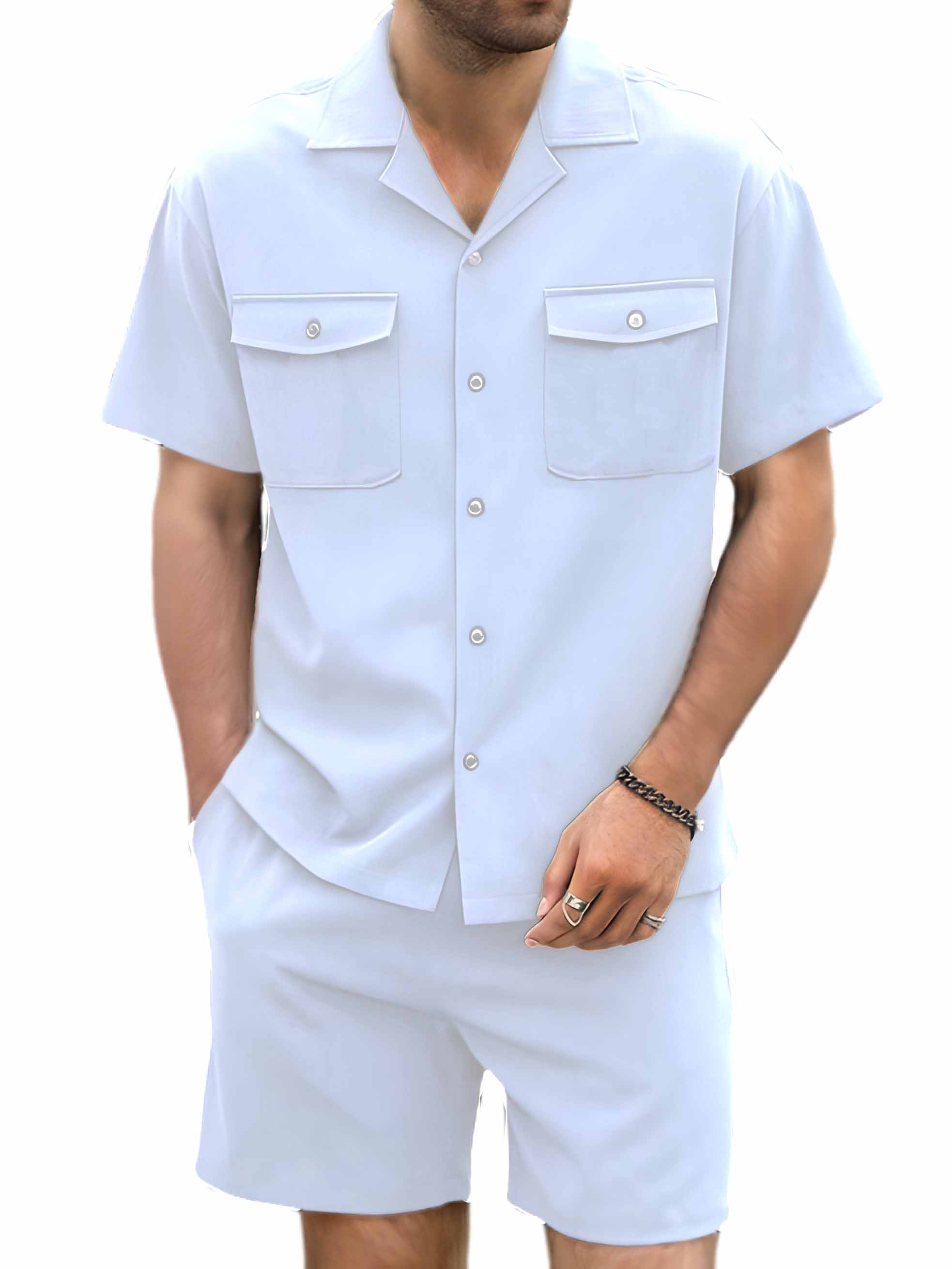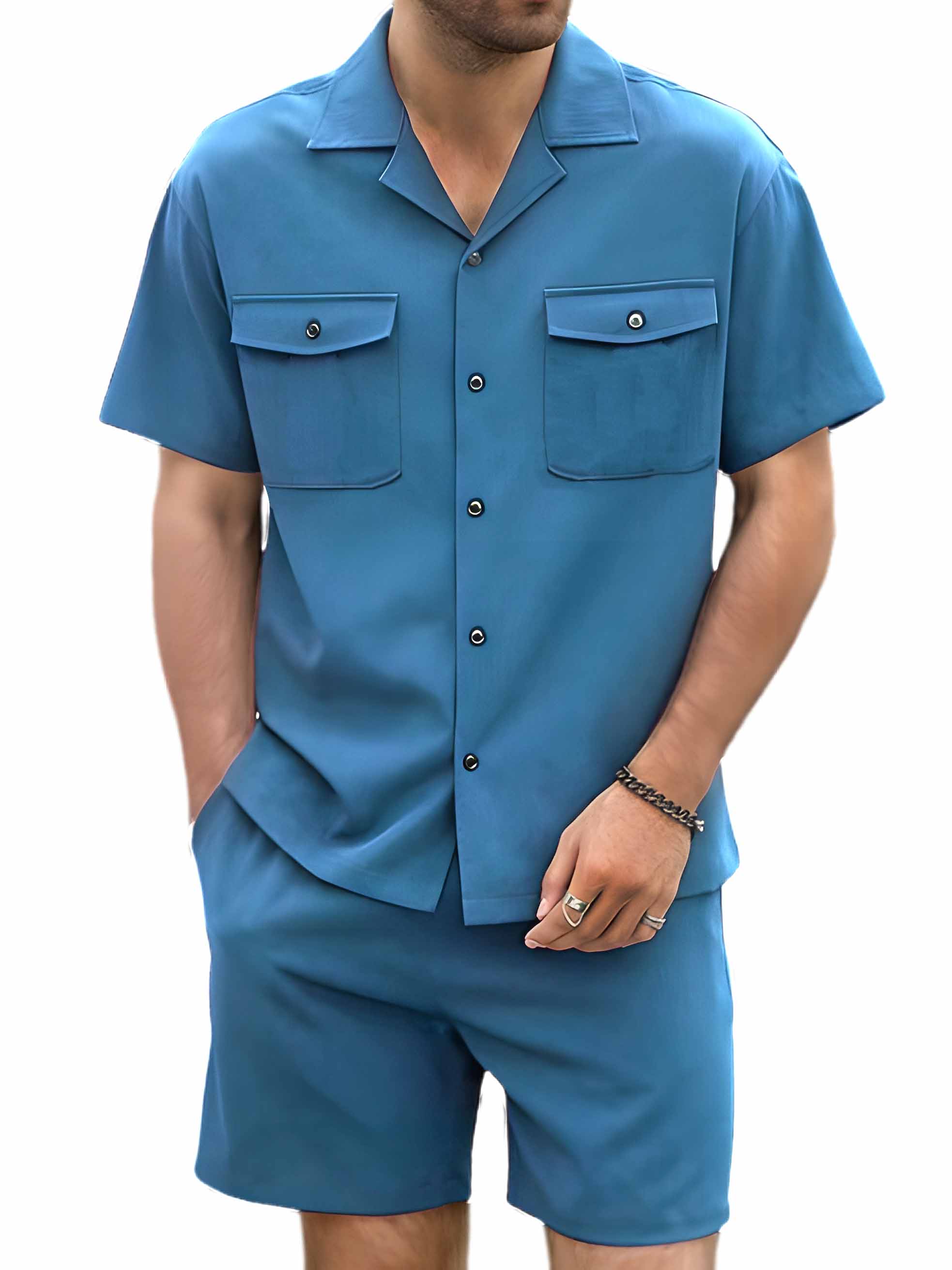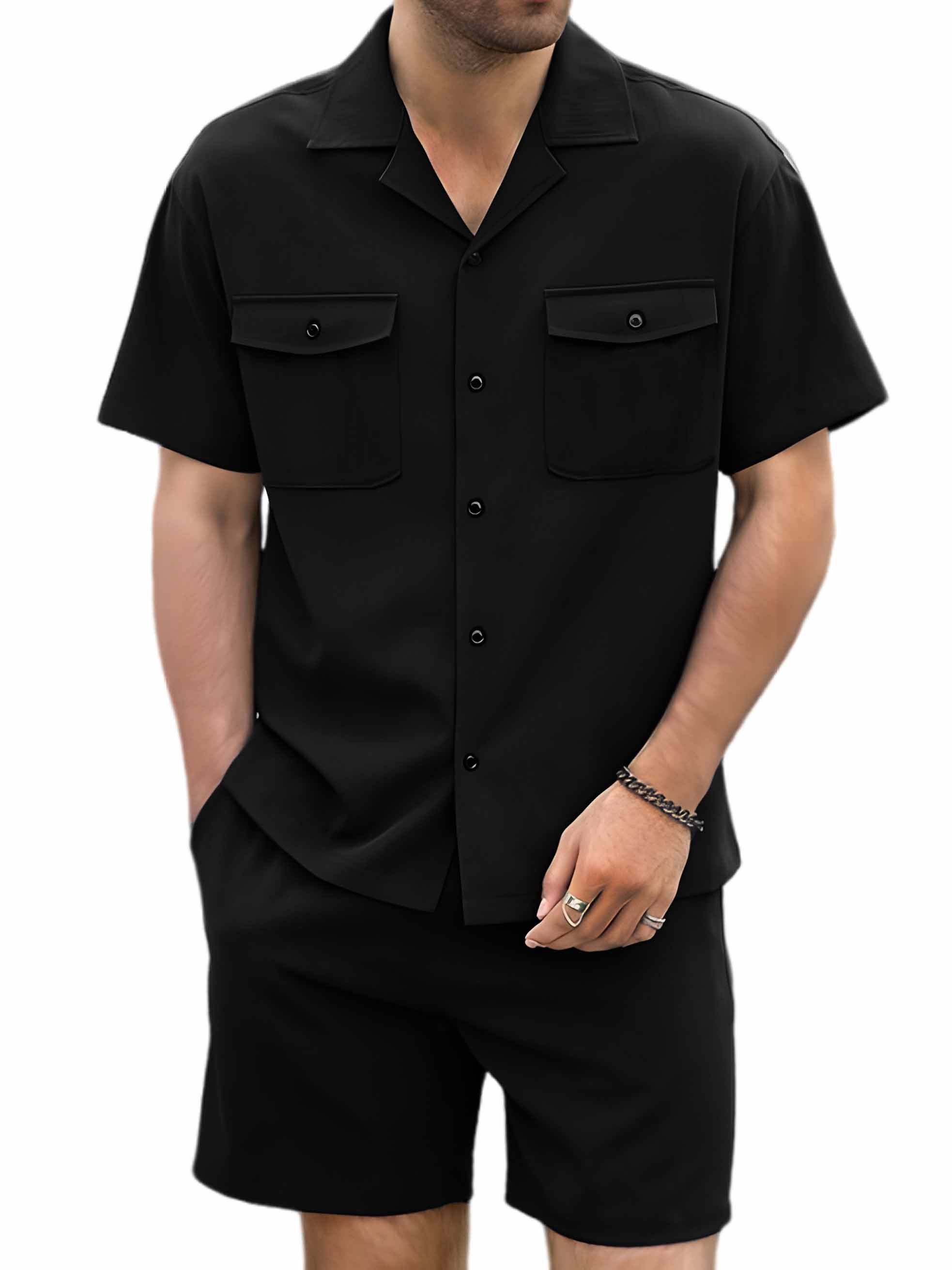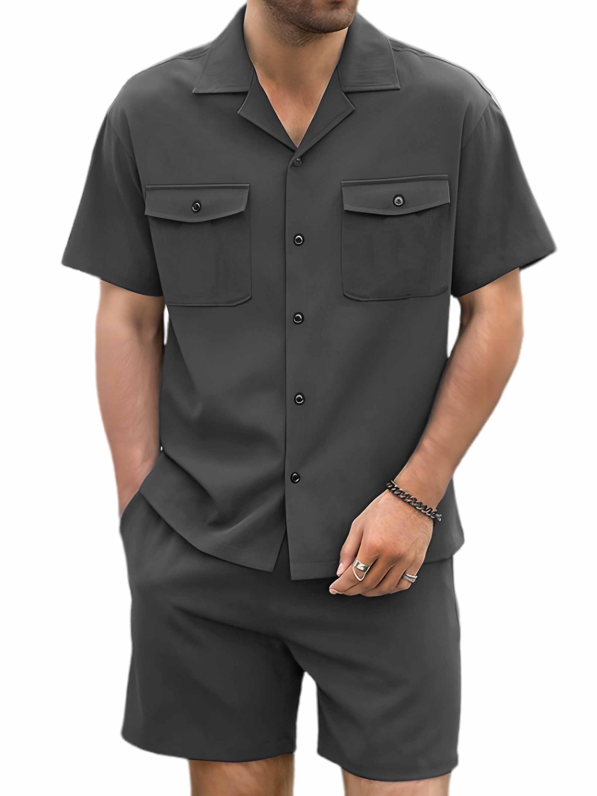 Men's Hawaiian Double Pocket Short Sleeve Shirt Shorts Two Piece Set