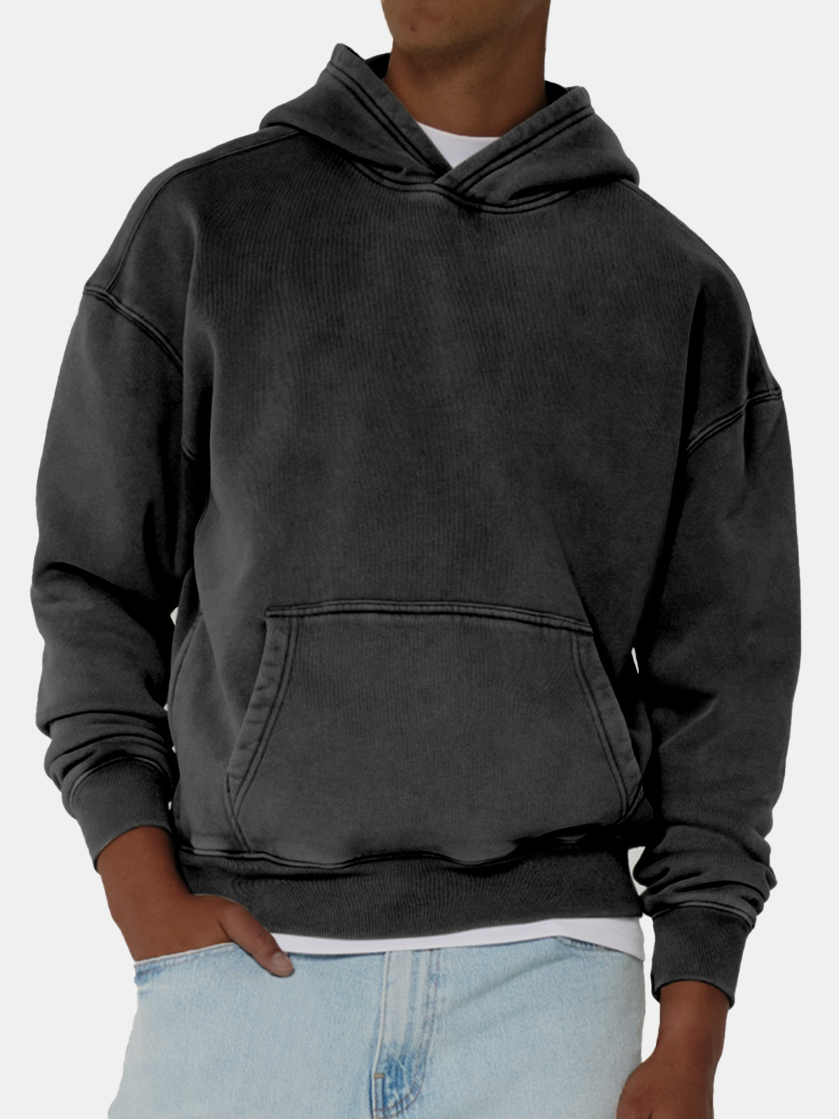 Men's Retro Distressed Washed Cotton Hooded Sweatshirt